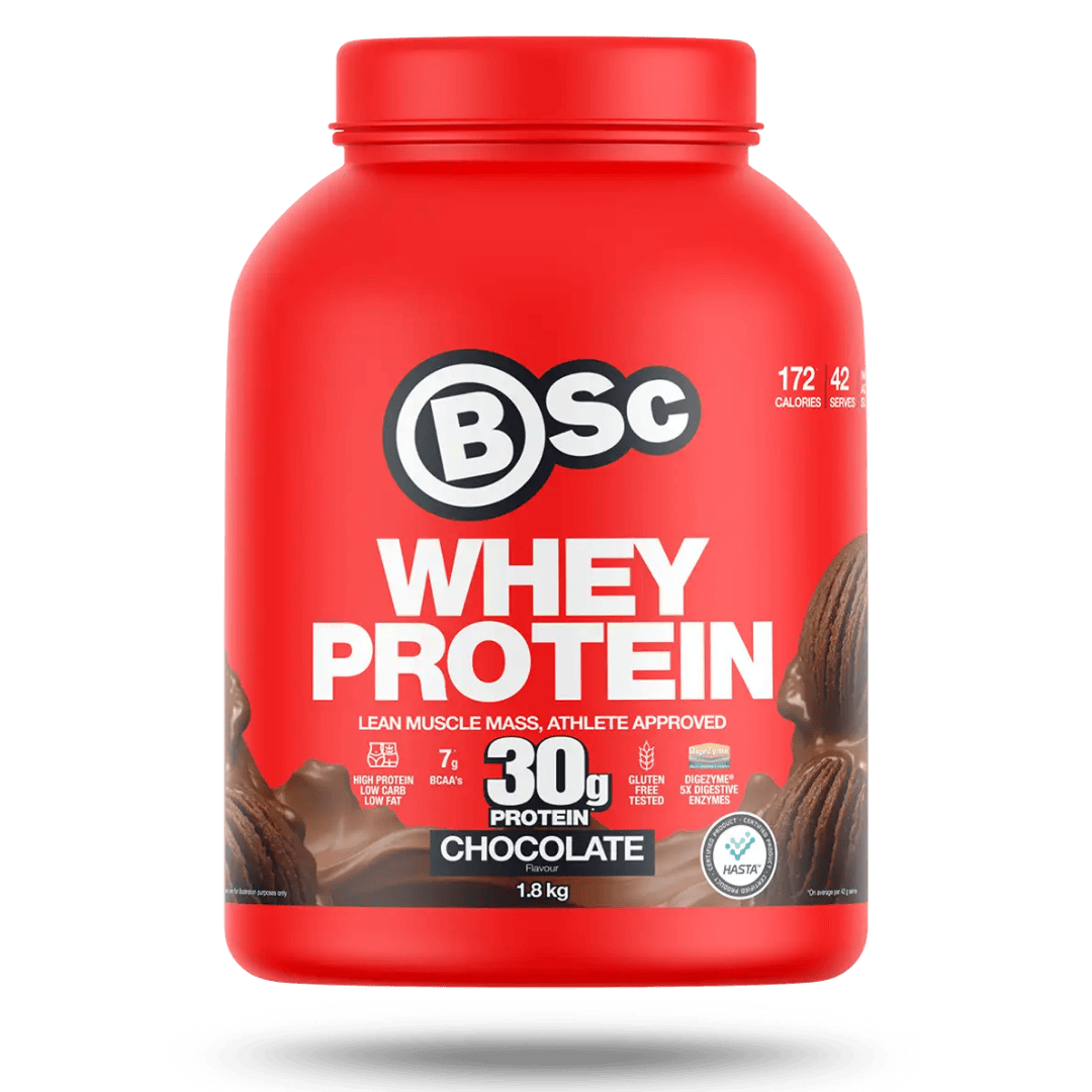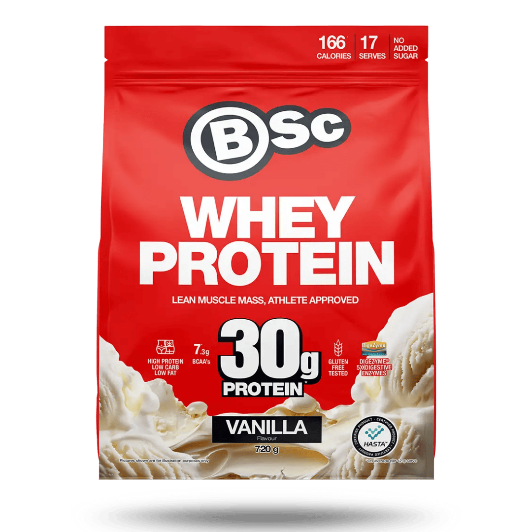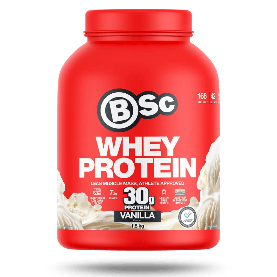 Body Science's premium Whey Protein offers a blend of whey protein concentrate and isolate, providing 30 grams of protein per 42-gram serve, with just 2.3 grams of fat and 7 grams of carbs. Crafted for lean weight management, this blend promotes muscle size, tone, and definition while supporting a lean physique year-round. Enhanced with five digestive enzymes for smooth digestion and fortified with BCAAs for added protein quality, it's ideal for building and maintaining muscle.