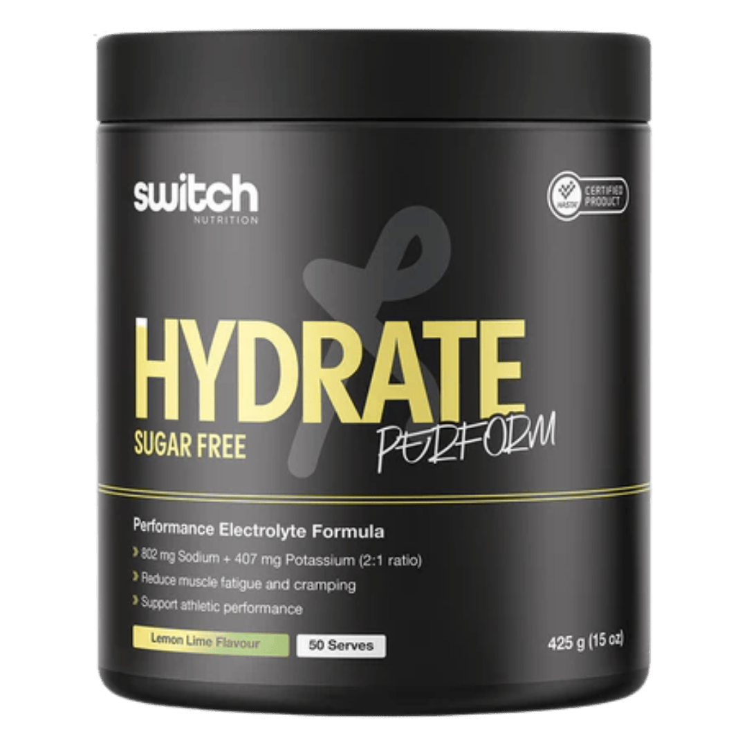 Hydrate Perform Sugar-Free by Switch Nutrition is a performance-oriented electrolyte hydration formula designed to support optimal fluid balance, endurance, and recovery without added sugars. Created for athletes, active individuals, and high-intensity training days, this advanced blend strategically replenishes key electrolytes lost through sweat while helping maintain hydration levels that contribute to peak performance.