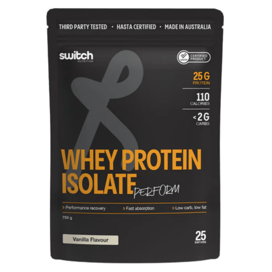 WPI Perform by Switch Nutrition is a premium whey protein isolate designed to deliver lean, fast-absorbing protein with minimal carbs and fats. Formulated with over 90% whey protein isolate per serving, this clean protein source supports muscle recovery and growth while remaining naturally low in sugars, fats and carbohydrates  making it ideal for training days and daily protein needs. The formula features rapid absorption and added digestive support, helping nutrients reach muscles quickly and making it gentle on digestion. HASTA certification means each batch is independently tested for purity and free from banned substances, offering confidence for athletes and performance-focused individuals.